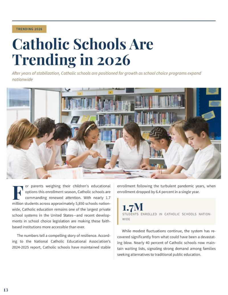 ENROLLMENT IN CATHOLIC SCHOOLS IS SLOWLY ON THE RISE. WITH THE PROMISE OF HIGH-QUALITY AND VALUES-CENTERED EDUCATION, PARENTS ARE LOOKING AT CATHOLIC SCHOOLS AS A PROMISING ALTERNATIVE TO PUBLIC EDUCATION.